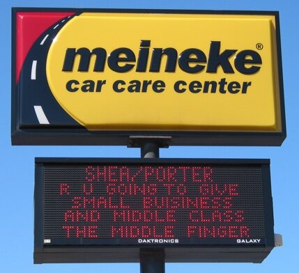 Won't you please call Meineke's customer care line at 1-800-447-3070 and ask why they want to hurt their business with crude, misspelled insults directed at an elected member of congress?