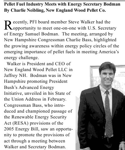 A screenshot of a portion of page 6 of the Pellet Fuels Institute Newsletter, March 2006 (.pdf):