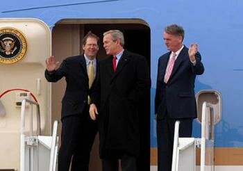 Seriously, does he think that after six years in the Senate, and earlier in the House, he can hide from his association with the Bush years? So lame. And note that this comes out at the "Friday night news dump" time.