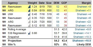Another Rasmussen, this time on the Senate race. A tighter race than before, but outside the MoE, and when leaners are brought in Shaheen gains a point.